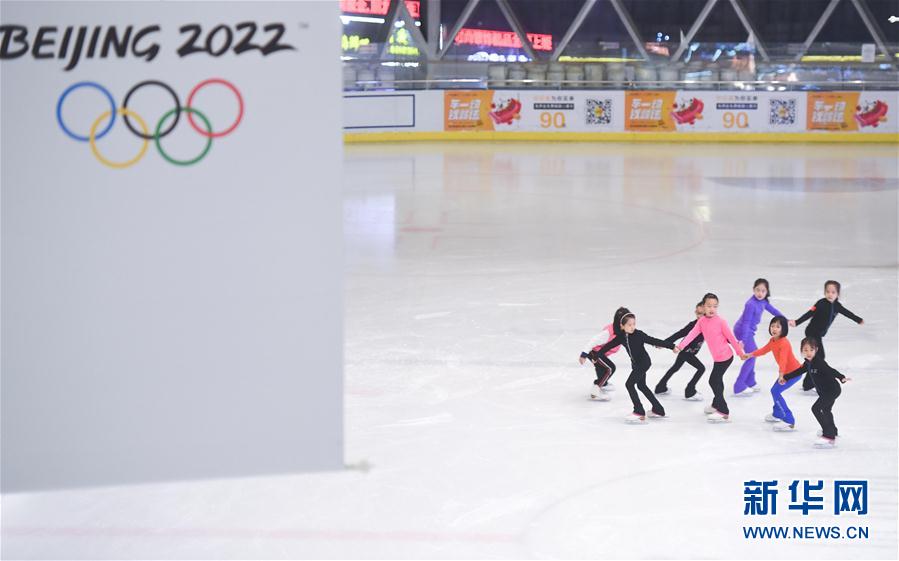 2月12日,在福建省福州市世纪星滑冰场,“冰娃”在练习队列滑。 新华社记者宋为伟摄