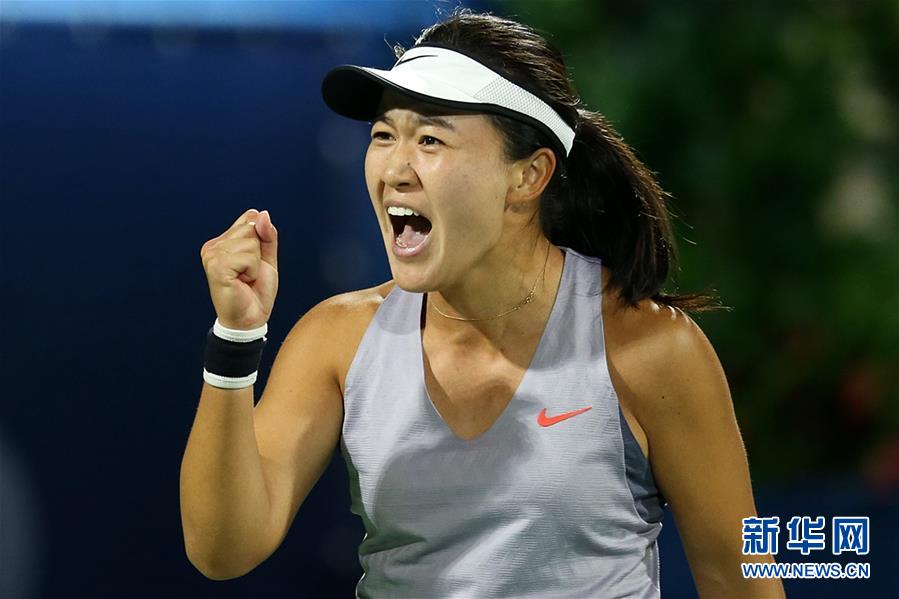 2月18日,朱琳在获胜后庆祝。 当日,在2019年WTA迪拜网球赛女单首轮比赛中,中国选手朱琳以2比1战胜比利时选手梅尔滕斯,晋级第二轮。 新华社发