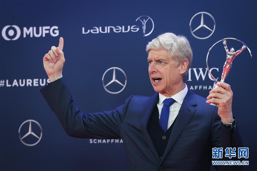 法国传奇名帅温格展示奖杯。新华社记者郑焕松摄