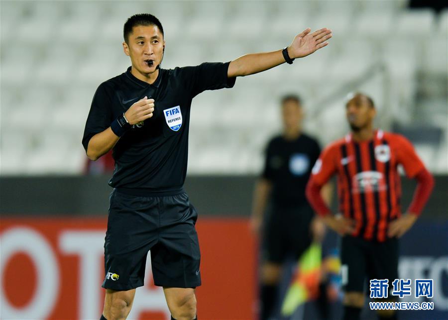 来自中国的主裁判马宁在比赛中执法。 新华社发