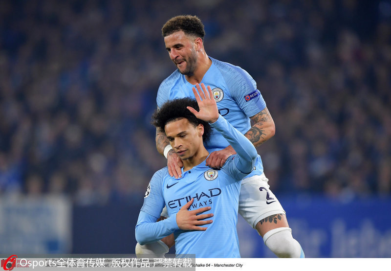 欧冠-斯特林90分钟绝杀 10人曼城3-2险胜沙尔克04