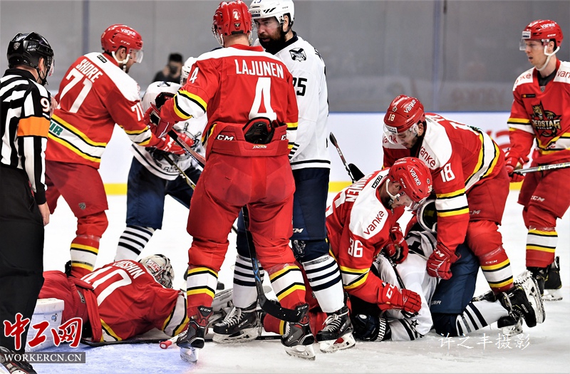 大陆冰球联赛北京昆仑鸿星万科龙6比3战胜俄罗斯海军上将