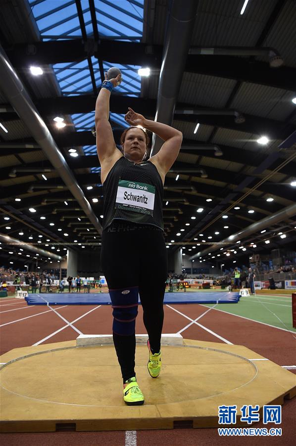 施瓦尼茨在女子铅球比赛中。新华社记者逯阳摄