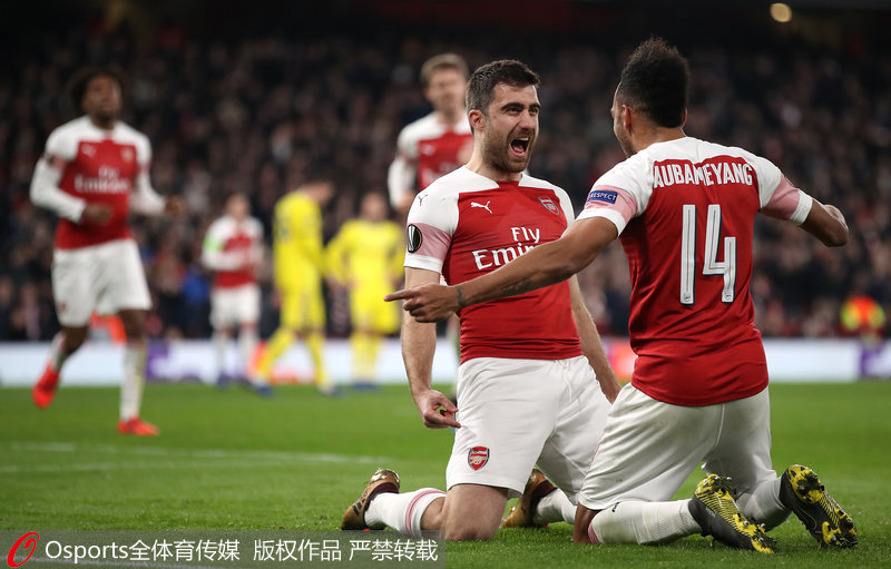 人民网北京2月22日电 北京时间2月22日1时55分(英国当地时间21日17时55分),2018/19赛季欧联杯1/16决赛次回合一场焦点战在酋长球场展开争夺,阿森纳主场迎战鲍里索夫。奥巴梅扬造对方乌龙,穆斯塔菲、帕帕斯塔索普洛斯建功,最终阿森纳3-0完胜对手,总比分3-1晋级。