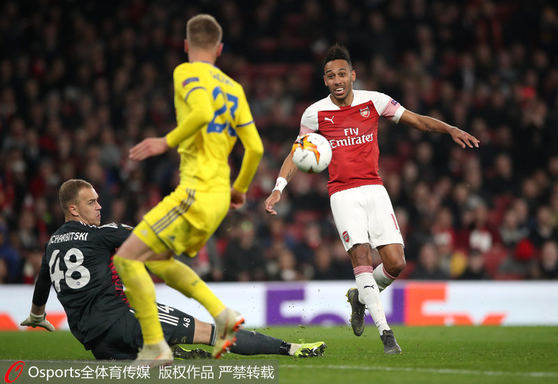 人民网北京2月22日电 北京时间2月22日1时55分(英国当地时间21日17时55分),2018/19赛季欧联杯1/16决赛次回合一场焦点战在酋长球场展开争夺,阿森纳主场迎战鲍里索夫。奥巴梅扬造对方乌龙,穆斯塔菲、帕帕斯塔索普洛斯建功,最终阿森纳3-0完胜对手,总比分3-1晋级。
