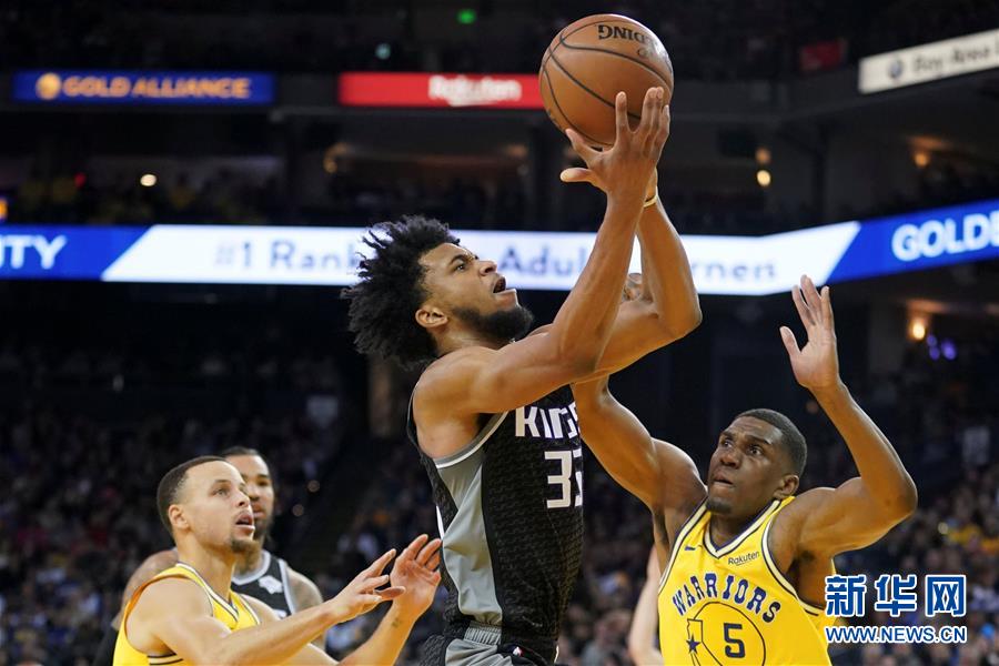 国王队球员巴格莱三世(中)在比赛中上篮。新华社/路透社