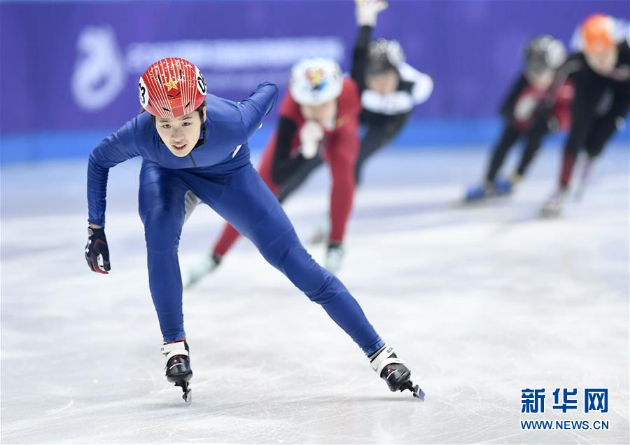 吉林体育学院万达长白山代表队选手张楚桐(前)在甲组女子500米预赛中,以45秒399晋级下一轮。新华社记者岳月伟摄