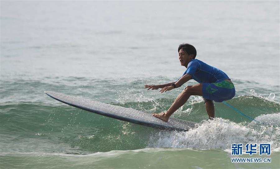 烟台市体育运动学校选手胡健在体校甲组男子长板比赛中。新华社记者杨冠宇摄