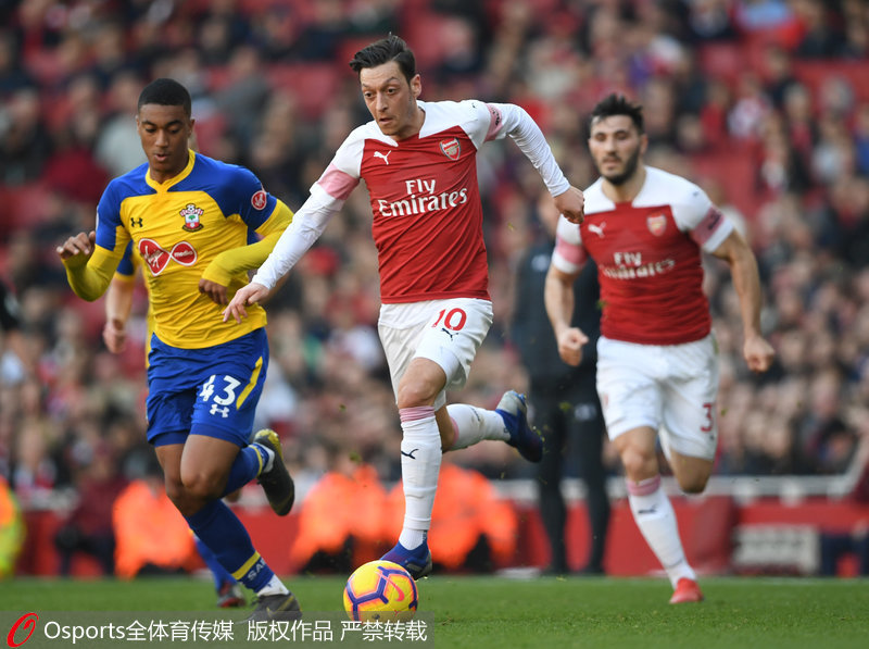 第85分钟,厄齐尔送出精妙传球,奥巴梅扬突入禁区后一脚劲射射门被门将挡出。
