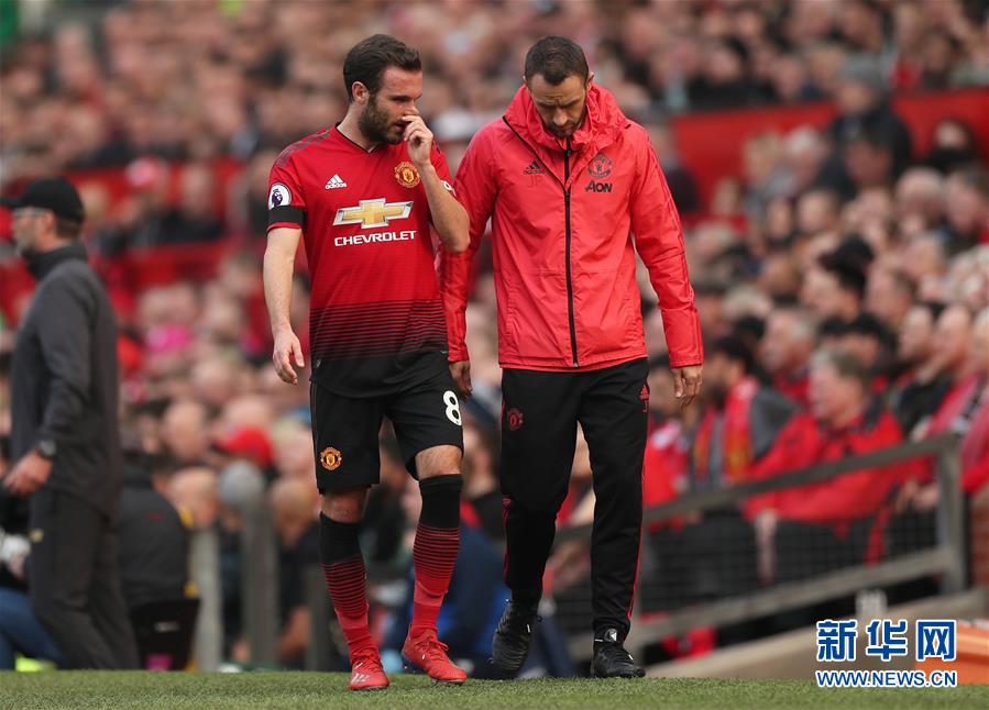 曼联队球员马塔(左)在比赛中受伤被替换下场。新华社/路透社
