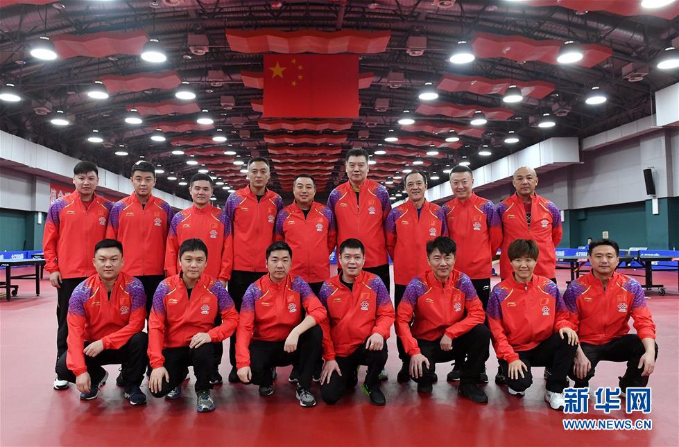2月25日,中国乒乓球协会主席刘国梁(后排中)与国家乒乓球队教练组合影。当日,中国乒协备战东京奥运会战略体系发布暨国家队2019年教练组成立媒体通气会在北京举行。新华社记者陶希夷摄