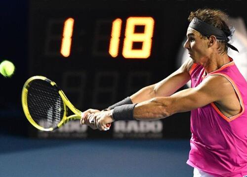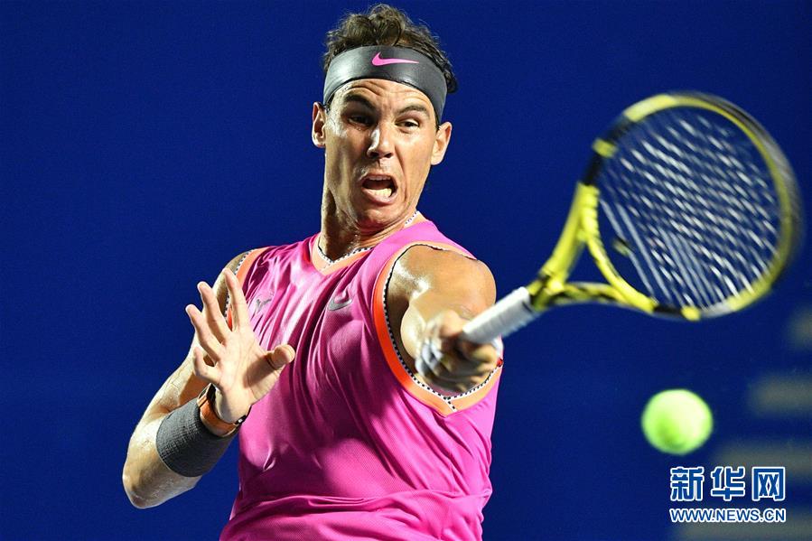 2月26日,纳达尔在比赛中回球。 当日,在2019墨西哥网球公开赛男单首轮比赛中,西班牙选手纳达尔以2比0战胜德国选手米沙·兹维列夫,晋级下一轮。 新华社记者辛悦卫摄