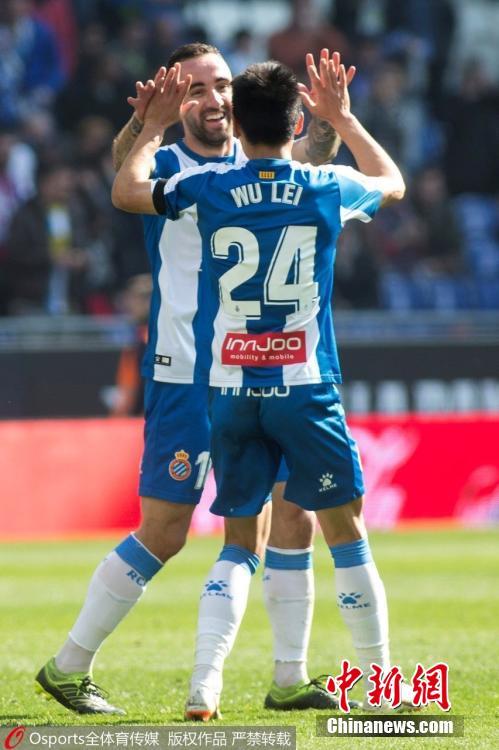 西甲联赛第26轮3月2日打响,西班牙人队坐镇主场对阵巴拉多利德队。效力于西班牙人球队的中国球员武磊首发出战,并在第65分钟攻入一球,助力球队3:1战胜巴拉多利德。图片来源:Osports全体育图片社
