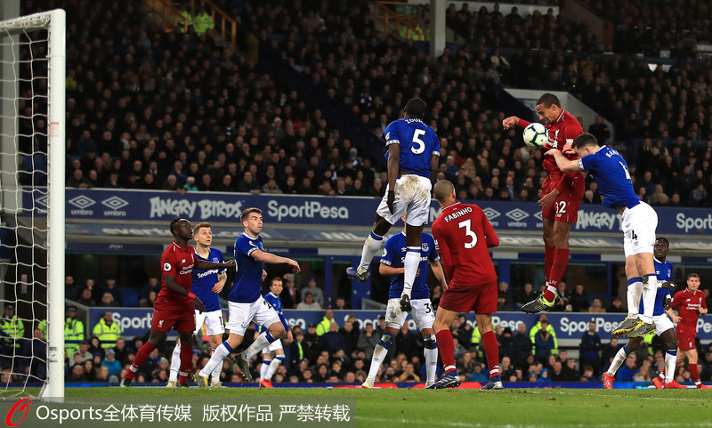 埃弗顿首次射门出现在第38分钟,基恩传球,沃尔科特高速突入禁区右侧劲射打飞。半场结束前,罗伯逊任意球传中,范戴克禁区右侧小角度头球攻门偏出近角。