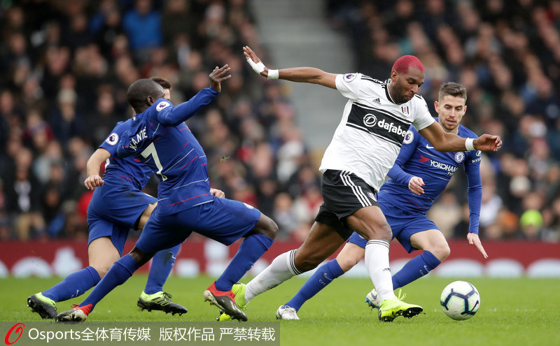 人民网北京3月4日电(杨磊) 北京时间3月3日晚,2018/19赛季英超第29轮继续进行,切尔西客场2比1力克富勒姆,伊瓜因率先进球,钱伯斯扳平,若日尼奥破门。