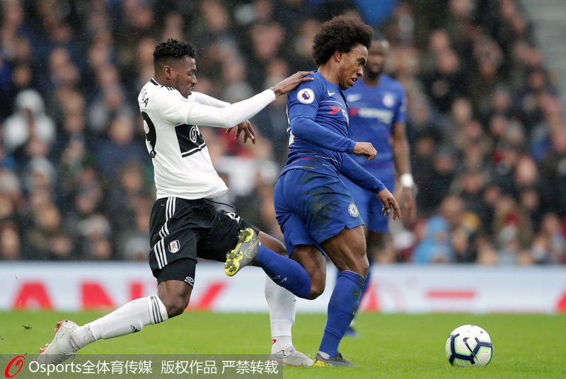 人民网北京3月4日电(杨磊) 北京时间3月3日晚,2018/19赛季英超第29轮继续进行,切尔西客场2比1力克富勒姆,伊瓜因率先进球,钱伯斯扳平,若日尼奥破门。
