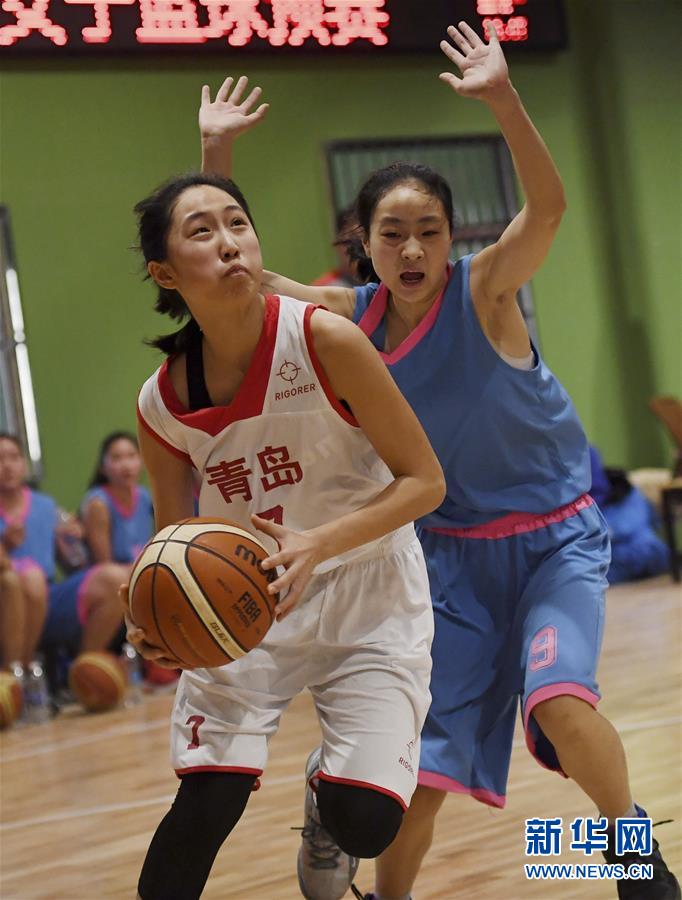 青岛市篮橄中心队球员袁佳彤(左)在比赛中带球突破。新华社记者李一博摄
