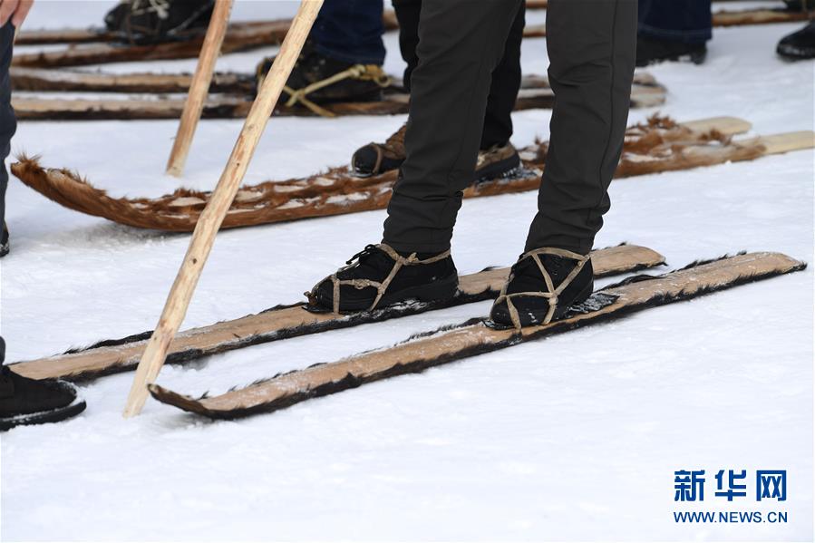 2019年3月1日,全民健身·悦动人生——“复活”的滑雪板 今年65岁的哈萨克族老人斯兰别克·沙和什是新疆维吾尔自治区非物质文化遗产古老毛皮滑雪板制作技艺传承人。作为家族第四代技艺传承人,斯兰别克·沙和什已经做了将近50年毛皮滑雪板。 毛皮滑雪板过去是住在深山里的牧民冬天必备的交通工具。制作时,先把上好的白松木或者桦木削成滑雪板的形状,浸泡在冰冷的河水里使其变得结实耐用,然后把滑雪板前段压弯,在底部包裹上一层马前腿的毛皮,使得滑雪板向前滑行时顺毛减小摩擦,向后踩蹬时逆毛增大摩擦。一副一米多长的滑雪板,大约需要四五块这样的毛皮才能拼合而成。斯兰别克·沙和什制作一副毛皮滑雪板大概需要半个月时间,现在,斯兰别克·沙和什正将这门技艺传承给他的儿子胡安什别克·斯兰别克。 因发现距今约1.2万年前人类滑雪姿态图案岩画,阿勒泰被称为“人类滑雪起源地”,当地人使用的毛皮滑雪板被认为是最古老的滑雪板之一。阿勒泰地区的雪季长达半年以上,冰雪资源得天独厚,是滑雪爱好者的天堂。如今,毛皮滑雪板的功能已从传统的狩猎出行工具演变成体育运动装备,成为丰富冬季冰雪旅游内容的特色项目。滑雪运动的蓬勃开展,让古老毛皮滑雪板制作技艺得以“复活”,更为阿勒泰这个目前已知人类滑雪最早起源地的滑雪运动赋予了深厚的底蕴。 这是人们在阿勒泰市将军山滑雪场参加毛皮滑雪庆祝活动。新华社记者沙达提摄