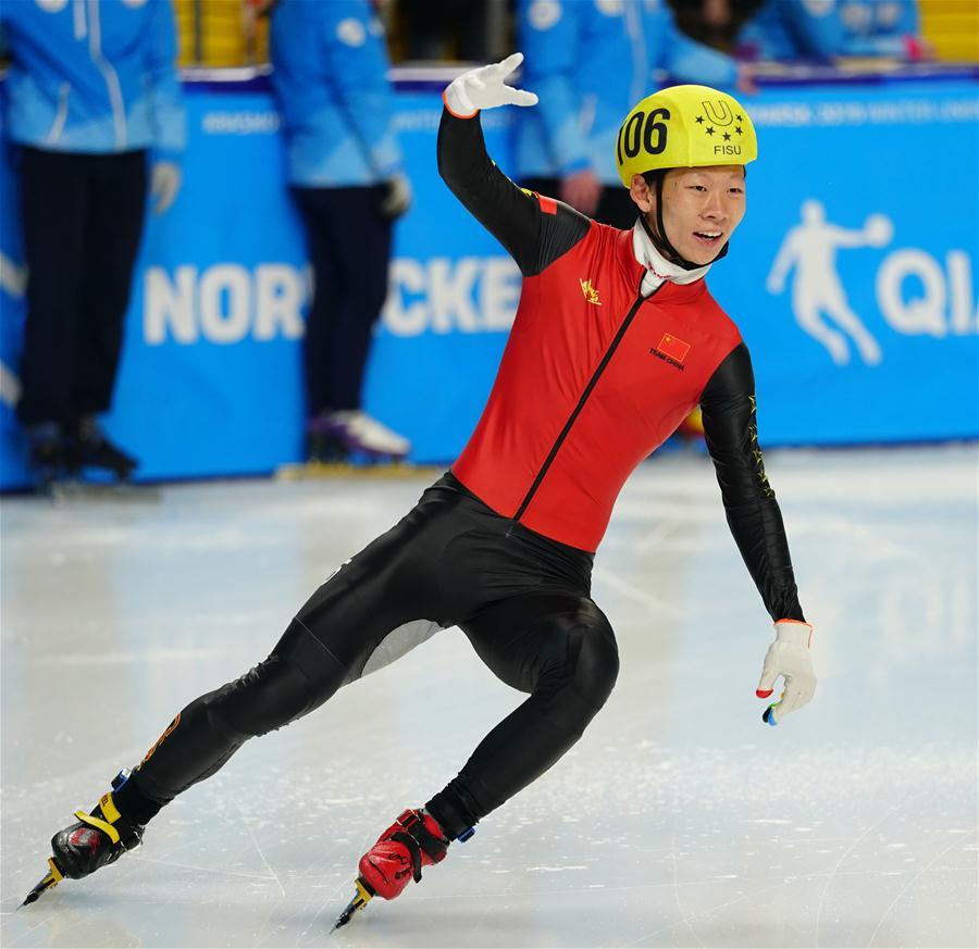 3月4日,安凯在比赛后庆祝。 当日,在俄罗斯克拉斯诺亚尔斯克进行的第29届世界大学生冬季运动会短道速滑男子1500米决赛中,中国选手安凯以2分34秒350的成绩获得冠军,这也是中国代表团在本届大冬会上夺得的首枚金牌。 新华社记者杨世尧摄