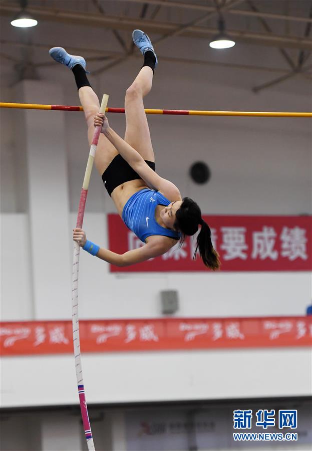山东选手孔予在女子撑杆跳高决赛中。新华社记者李一博摄