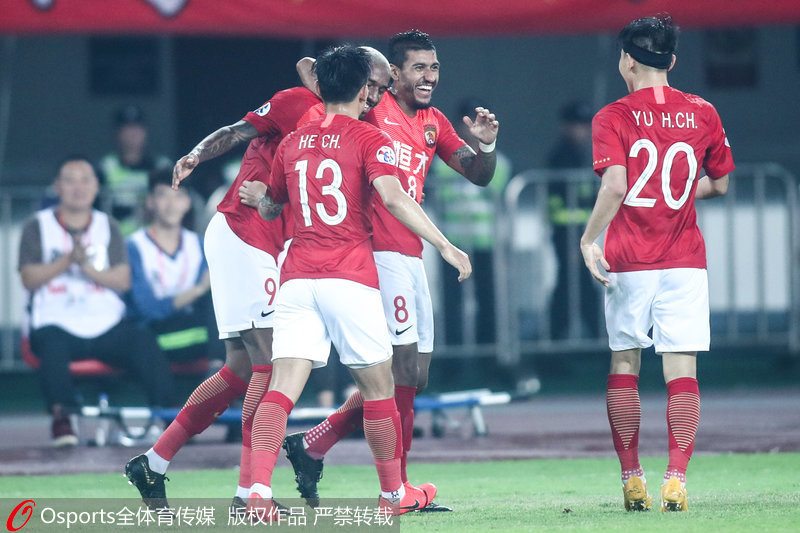 第19分钟,恒大取得进球!李学鹏左路带球高速推进送出直塞,于汉超前插禁区左路起球传门前,后点的塔利斯卡拍马赶到,鱼跃冲顶破网!恒大1-0领先!