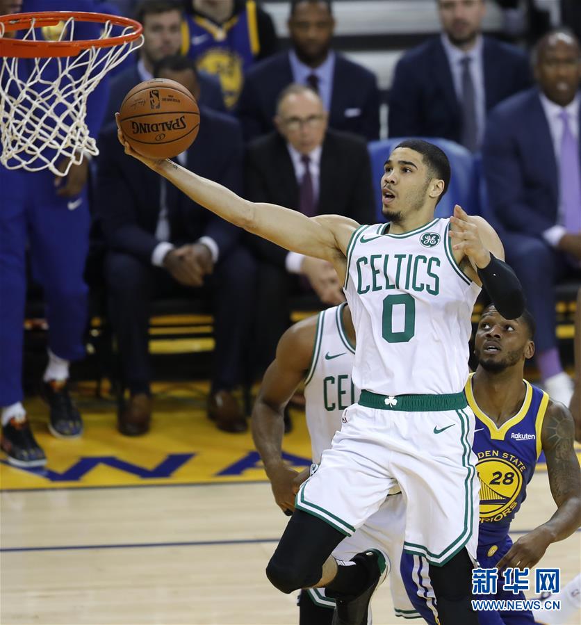 凯尔特人队球员杰森·塔图姆(上)在比赛中上篮。新华社发(董旭东摄)