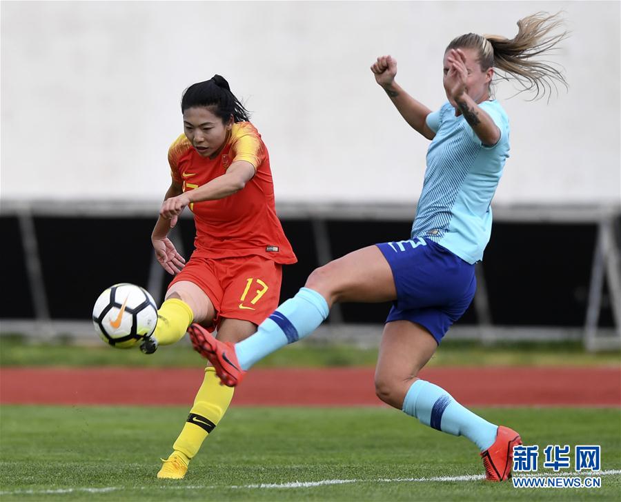3月6日,中国队球员古雅沙(左)与荷兰队球员范·林特伦在比赛中拼抢。 当日,在2019阿尔加夫杯国际女足邀请赛第11和第12名排位赛中,中国队在90分钟内1比1战平荷兰队,经过点球大战,最终以3比5的总比分负于对手。 新华社记者张立云摄
