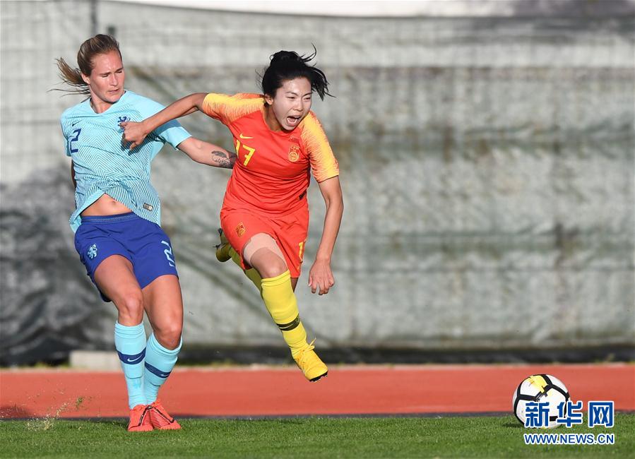 3月6日,中国队球员古雅沙(右)在比赛中与荷兰队球员范·林特伦拼抢。 当日,在2019阿尔加夫杯国际女足邀请赛第11和第12名排位赛中,中国队在90分钟内1比1战平荷兰队,经过点球大战,最终以3比5的总比分负于对手。 新华社记者张立云摄