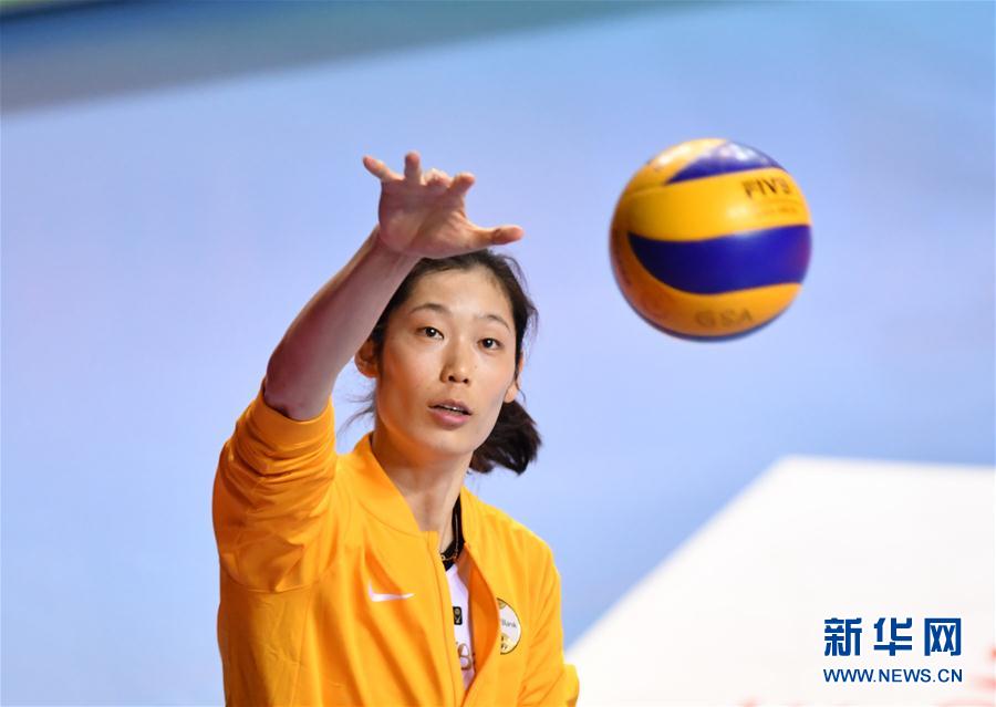 3月6日,瓦基弗银行队球员朱婷在赛场上热身。 当日,在2018-2019赛季土耳其女排超级联赛中,瓦基弗银行队主场以3比0战胜恰纳卡莱队。 新华社记者徐速绘摄