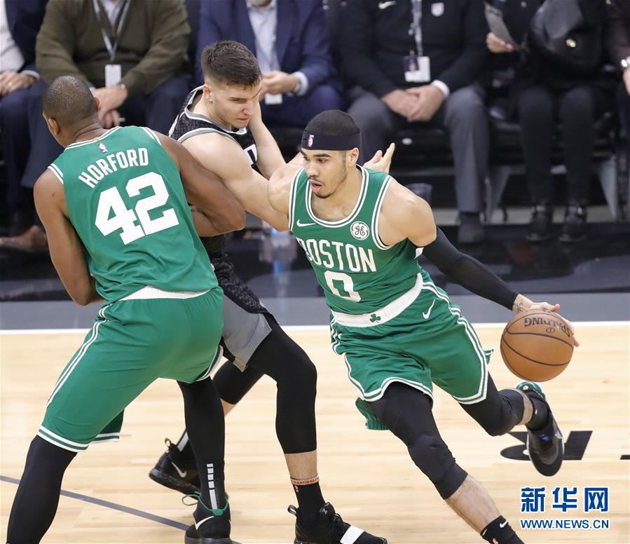 凯尔特人队球员塔图姆(右)在比赛中带球进攻。新华社发(董旭东摄)