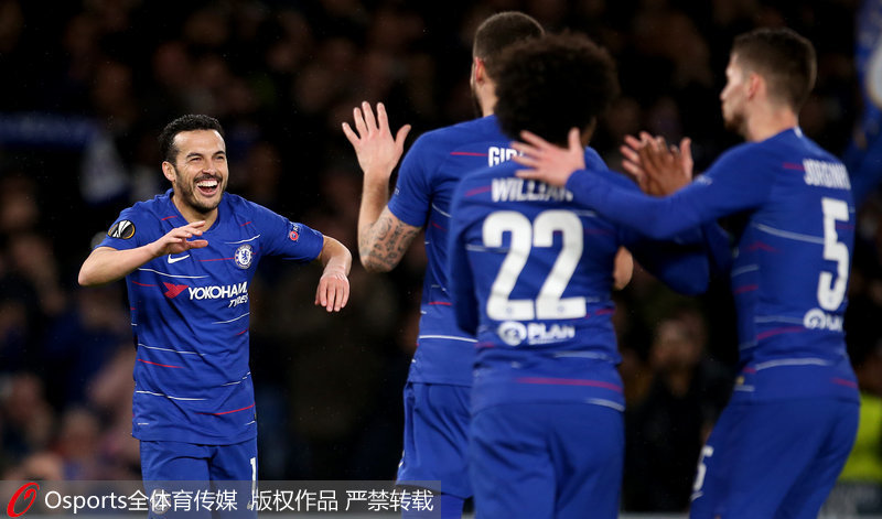 人民网北京3月8日电(杨磊) 北京时间3月8日凌晨,2018/19赛季欧联杯1/8决赛首回合展开争夺,切尔西主场3比0完胜基辅迪纳摩,佩德罗、威廉和奥多伊先后进球。