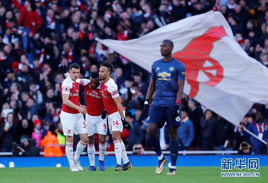 阿森纳队球员扎卡(左一)进球后与队友庆祝。新华社/路透社