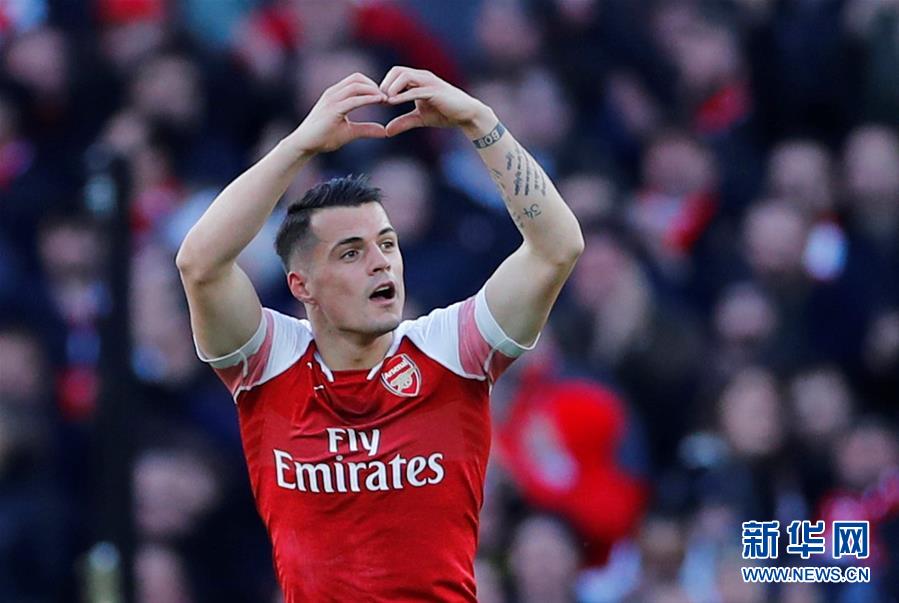 阿森纳队球员扎卡进球后庆祝。新华社/路透社