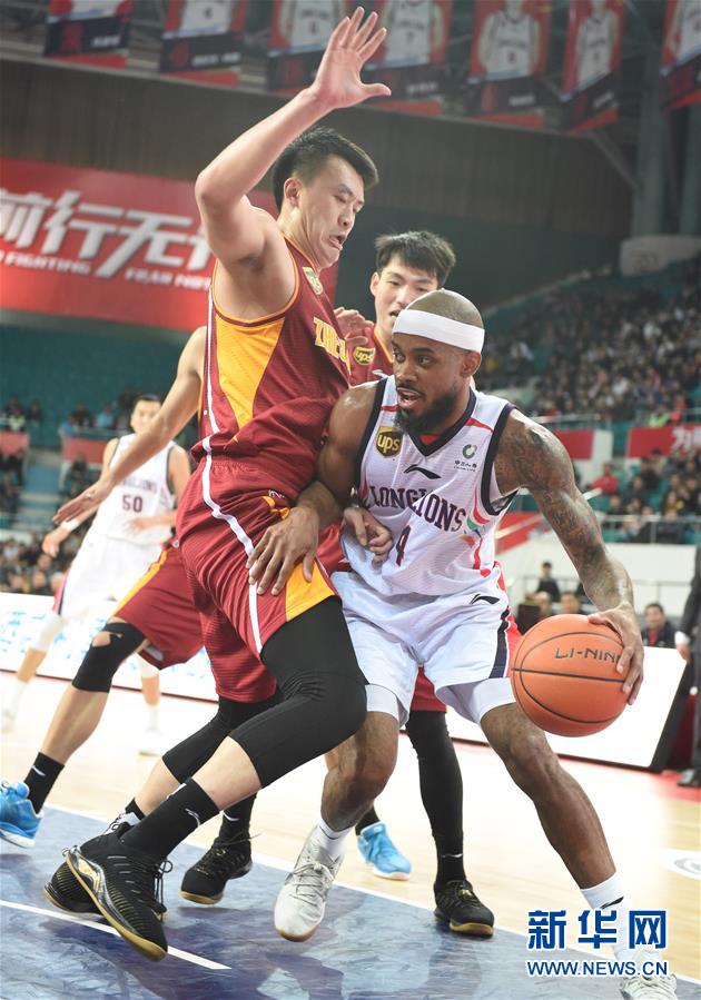 时代中国广州队球员布朗(右)在比赛中带球突破。新华社记者卢汉欣摄