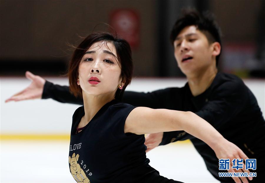 3月12日,即将征战世锦赛双人滑项目的隋文静(左)/韩聪在训练中。 当日,中国花样滑冰队在北京首钢园的国家冬季运动训练中心举行媒体公开课。2019年花样滑冰世界锦标赛将于3月18日至24日在日本埼玉举行。 新华社记者王丽莉摄