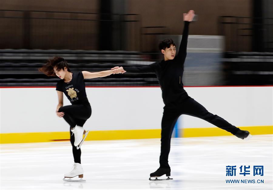 3月12日,即将征战世锦赛双人滑项目的隋文静(左)/韩聪在训练中。 当日,中国花样滑冰队在北京首钢园的国家冬季运动训练中心举行媒体公开课。2019年花样滑冰世界锦标赛将于3月18日至24日在日本埼玉举行。 新华社记者王丽莉摄