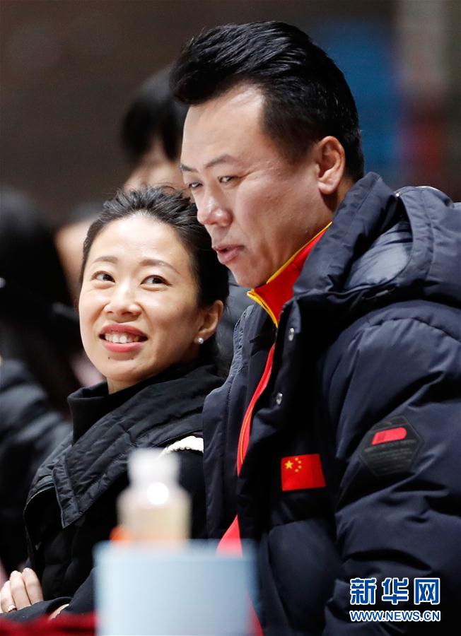 3月12日,中国花样滑冰协会主席申雪(左)与中国花样滑冰队总教练赵宏博在场边观看训练。 当日,中国花样滑冰队在北京首钢园的国家冬季运动训练中心举行媒体公开课。2019年花样滑冰世界锦标赛将于3月18日至24日在日本埼玉举行。 新华社记者王丽莉摄