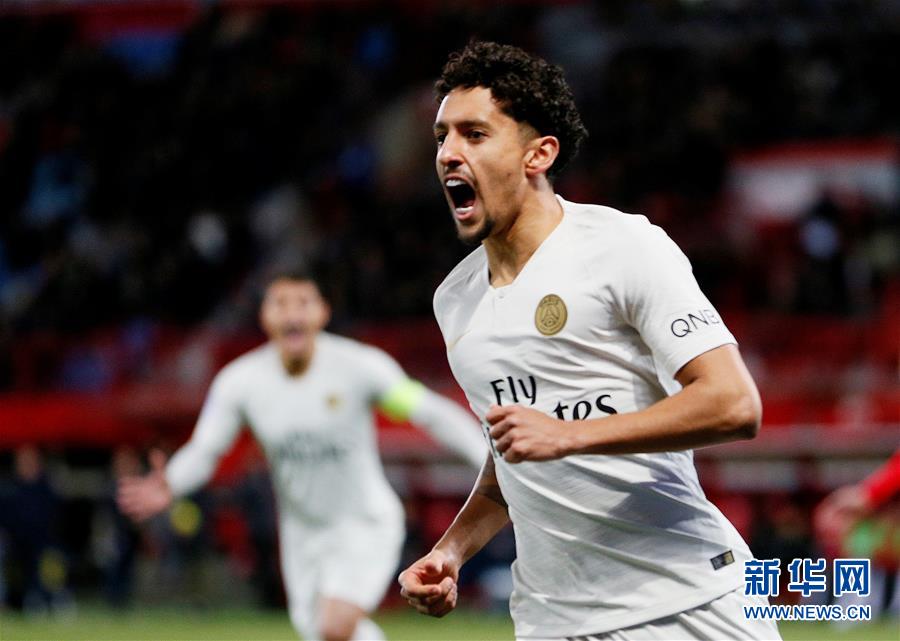 巴黎圣日耳曼队球员马尔基尼奥斯进球后庆祝。新华社/路透社