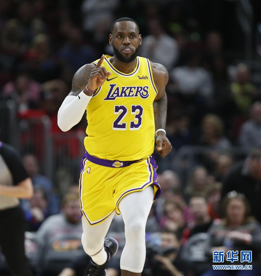 湖人队球员詹姆斯在比赛中庆祝得分。新华社/美联社