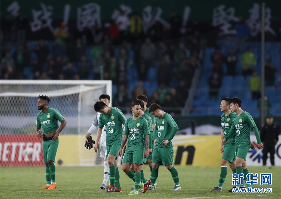 3月13日,北京国安队球员在比赛后。 当日,在北京进行的2019赛季亚洲冠军联赛G组小组赛第二轮比赛中,北京中赫国安队主场以0比0战平浦和红钻队。 新华社记者丁旭摄