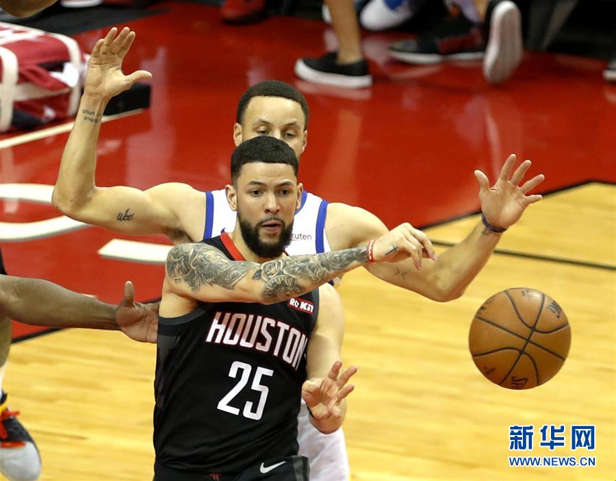 火箭队球员里弗斯(前)在比赛中传球。新华社发(宋穹摄)