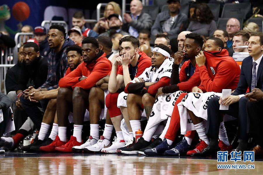 奇才队球员们在替补席上观赛。新华社发(沈霆摄)