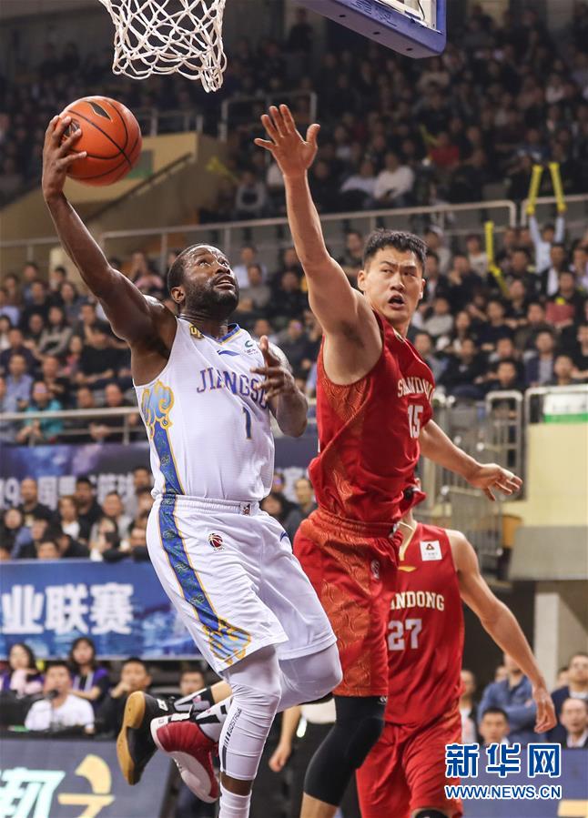 江苏苏州肯帝亚队球员斯隆(左)在比赛中上篮。新华社记者杨磊摄