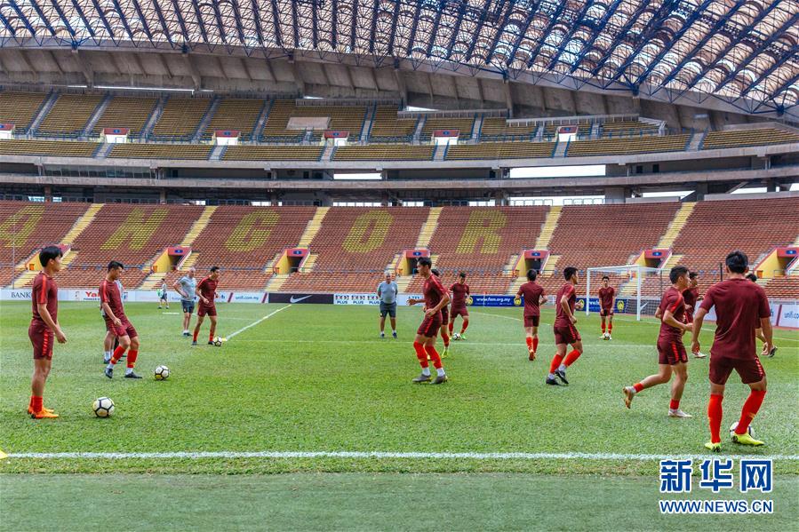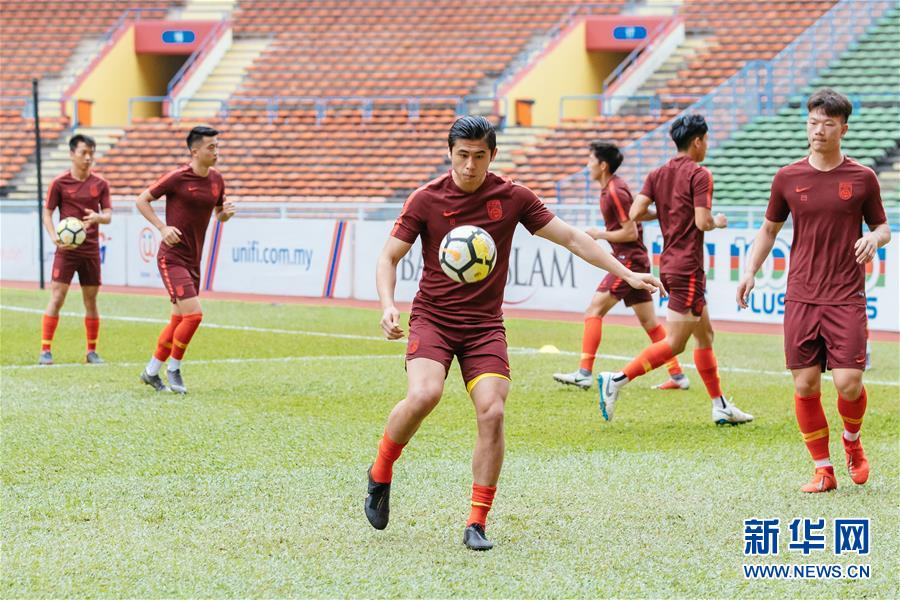 中国国奥队球员在赛前训练中。新华社记者朱炜摄