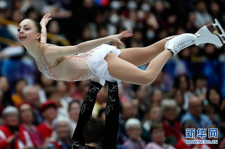 柏伊寇娃(上)/寇兹洛夫斯基在双人滑自由滑比赛中。新华社记者王丽莉摄