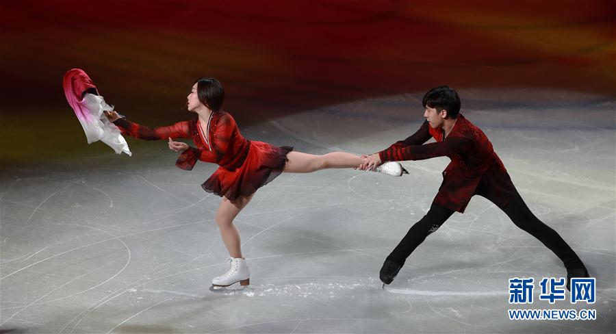 3月24日,中国组合隋文静(左)/韩聪在进行表演。 当日,2019年花样滑冰世界锦标赛表演滑在日本崎玉举行。 新华社记者杜潇逸摄