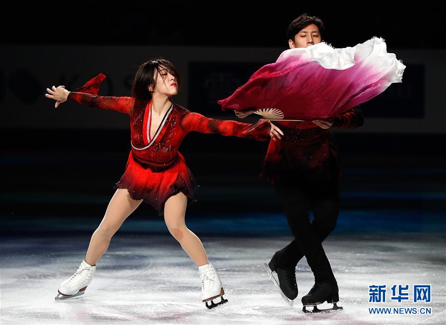 3月24日,中国组合隋文静(左)/韩聪进行表演。 当日,2019年花样滑冰世界锦标赛表演滑在日本崎玉举行。 新华社记者王丽莉摄