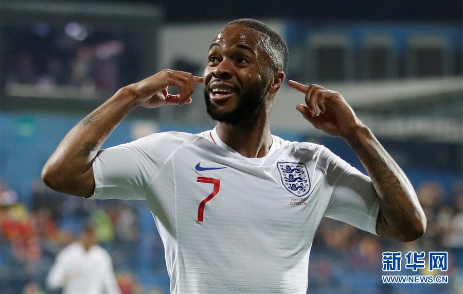 3月25日,英格兰队球员斯特林庆祝进球。 当日,在黑山波德戈里察举行的2020年欧洲足球锦标赛预选赛A组第二轮比赛中,英格兰队客场以5比1战胜黑山队。 新华社/路透