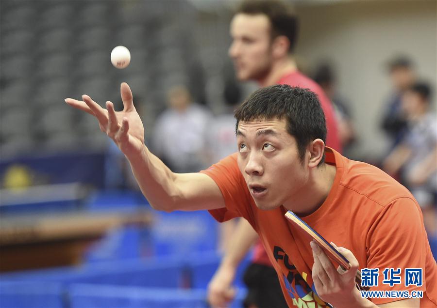 3月25日,中国队球员许昕在训练中。 当日,中国国家乒乓球队在多哈训练,备战2019年卡塔尔公开赛。 新华社发(尼库摄)