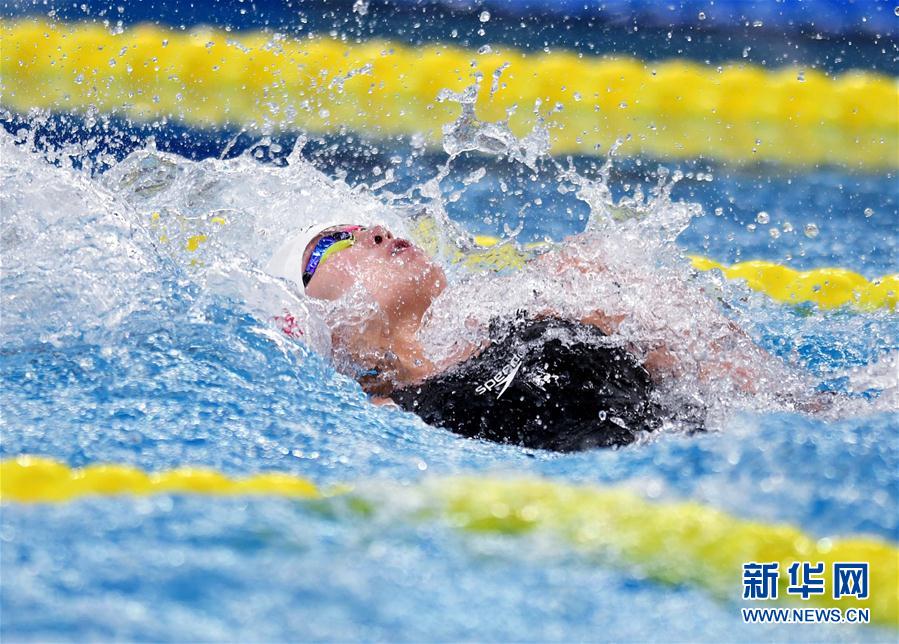 3月28日,傅园慧在比赛中。 当日,在青岛举行的2019全国游泳冠军赛暨世锦赛选拔赛女子50米仰泳决赛中,浙江队选手傅园慧以27秒61的成绩获得冠军。 新华社记者李紫恒摄